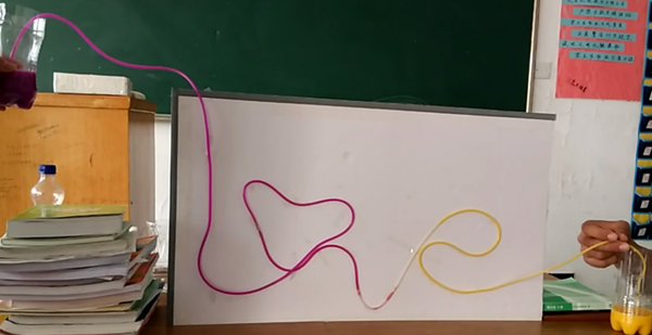 新学期伊始,张季就给大家布置了一项特别的作业。他把全班分成5个研究小组,每个小组自由选定一个实验题目,用尽可能简单的实验器材搭建一个实验仪器,并用手机拍摄下实验过程,制作成PPT,学期末在全班同学面前进行汇报。“这种方式新鲜、有趣,可以最大限度激发学生通过实践获得知识的积极性。”张季说道。果不其然,自作业布置日起,同学们便开始积极行动,亲自制作,最终“炫技”课堂拉开了帷幕。
