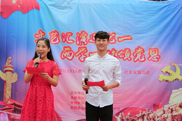 实践队以反映社会主义核心价值观为主要内容,以弘扬时代精神,倡导文明新风为目标,深刻贯彻践行“两学一做”的重要精神,精心安排了两场文艺汇演。一篇《大地行吟——合肥篇》的朗诵表达了对合肥的歌颂和赞美,同时也吸引了观众的目光。现场共表演了14个节目,其中民族舞《印度新娘》、笛子演奏《美丽的神话》、黄梅戏《女驸马》《夫妻双双把家还》以及拉丁舞等节目最受村民们的欢迎,现场一段《小苹果》的舞蹈更将本次汇演推向了高潮,现场100多名观众掌声不断,喝彩连连。本次汇演不仅丰富了广大村民的业余文化生活,更展现了bat365社会实践队的特色与亮点,同时也践行了“两学一做”中文艺下乡的重要精神。