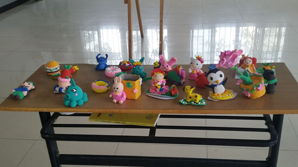 学前教育专业学生结合专业特色,制作了或憨态可掬、或温馨可爱的橡皮手工泥塑 ,用专业特色和特长向老师表达祝福。