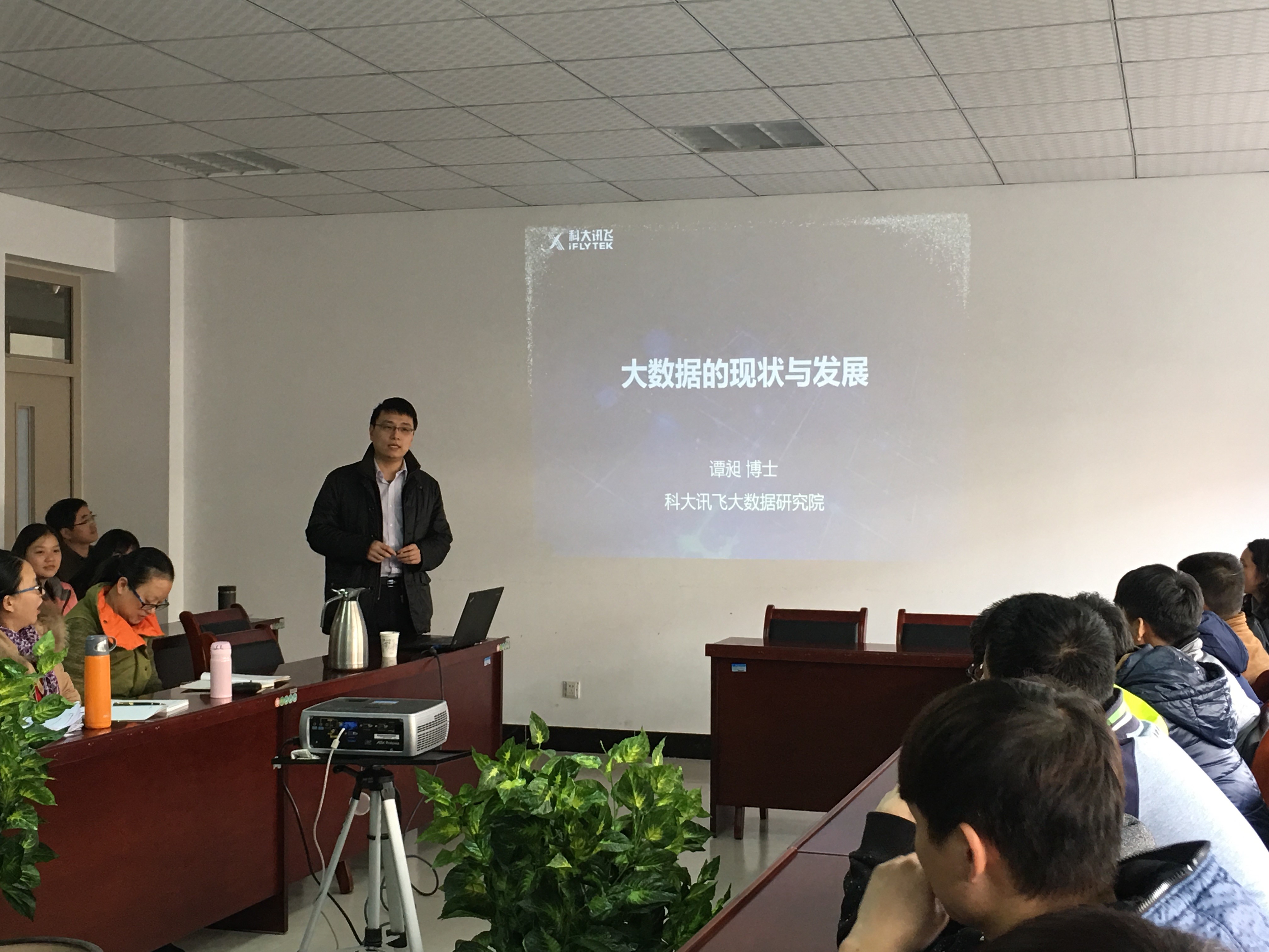 本网讯(通讯员:石文玉)11月30日下午,科大讯飞大数据研究院副院长谭昶博士应邀来校作题为“大数据现状与发展”的学术报告,信息工程学院部分师生聆听了此次报告。报告由信息工程学院副院长万家华主持。