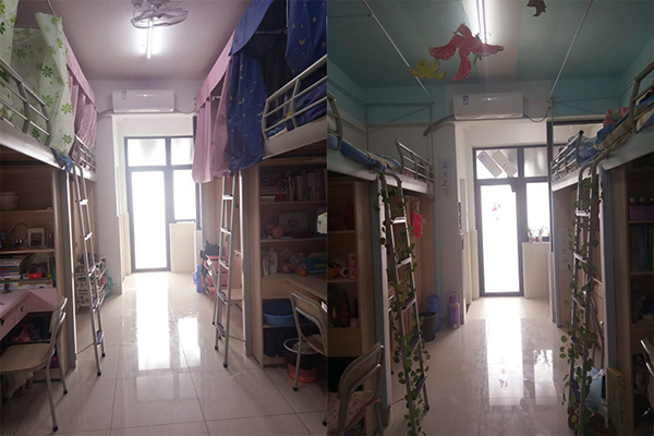 宿舍评比以“同在屋檐下,共爱一个家”为主题,全体大一新生从整洁卫生、创意、主题等方面凸显宿舍特色文化,活动充分调动了学生的创造能力和动手能力。