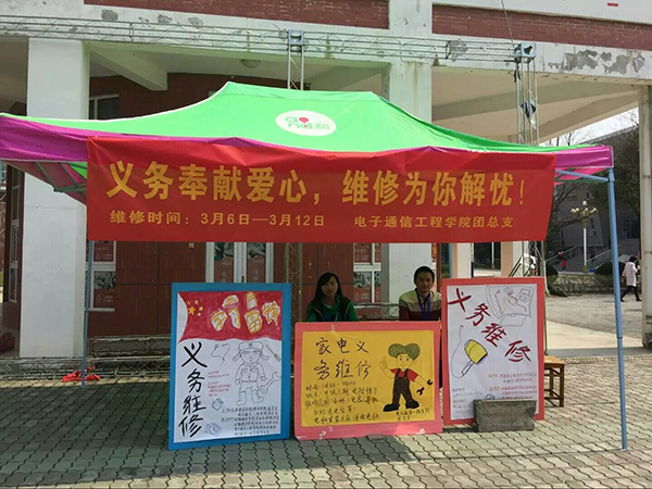 此次活动由电子通信工程学院团总支主办,学生会、科技与创新协会承办、院务助理团协办。小电器义务维修活动面向全校师生,已经连续举办了七年,涉及面广,影响力大。此次维修活动在三期广场、中快广场、14号教学楼前均设立了服务点。义务维修活动将持续到3月12日晚6时,在此期间,服务点依旧全天会有工作人员值班,实验室也会一直有技术人员进行维修,争取为有需要的师生及时解决问题,奉献爱心。