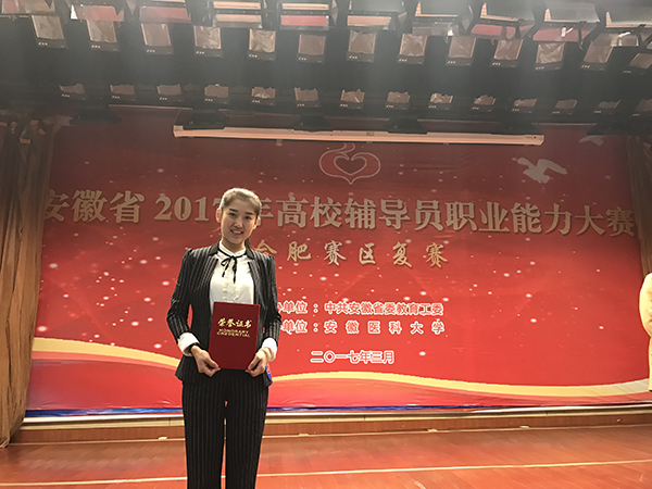 本网讯(通讯员:王强亚)为推动高校辅导员队伍专业化、职业化发展,促进辅导员交流学习,进一步提高辅导员工作能力和育人水平,3月11日至13日,由省委教育工委主办,安徽医科大学承办的“2017年安徽省高校辅导员职业能力比赛复赛(合肥赛区)”顺利举办,bat365辅导员董甜甜获得三等奖的好成绩。