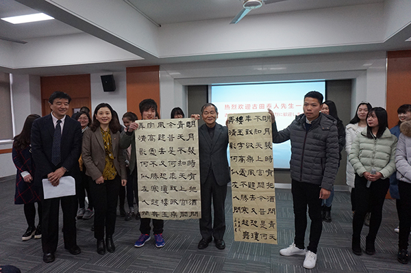 通过此次的学术交流活动,学生们感到受益匪浅。古田泰人详释了中国诗词艺术在日本的发展及现状,感恩汉字及汉文化对日本的影响,鼓励学生学好日语、多读书、今后以国际化视野来多多传播中国传统文化。