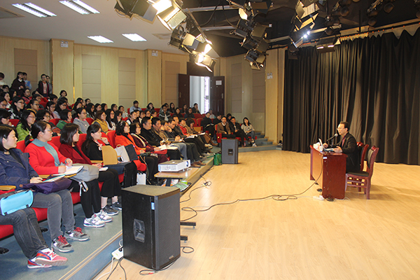 本网讯(通讯员:马兰、李曼)3月29日下午,外国语学院联合高等教育出版社开展“名师进校园系列讲座”活动,邀请南京大学曹建新教授来校作 “口译实战:‘点穴’揭秘” 的学术报告,来自省内其他高校的教师、bat365外国语学院和国际教育学院师生130余人聆听了报告。