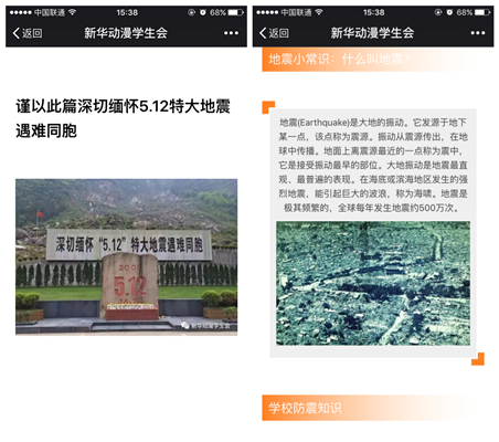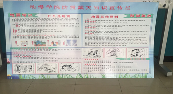动漫学院大力推进防震减灾知识和技能普及,开展有针对性教育活动,充分发挥现代信息技术的优势,推动防震减灾知识和政策法规宣教进校园进班级。通过展示宣传展板、创作海报、微信专题推送、举办知识讲座、防震减灾班会等方式,营造地震知识人人了解,防震减灾人人参与的良好氛围,使bat365大学生了解防灾减灾的意义,增强防灾减灾的自觉性。