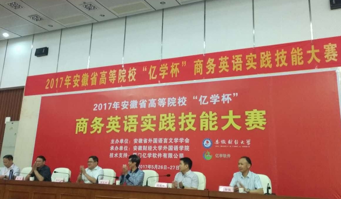 安徽省高等院校“亿学杯”商务英语实践技能大赛是面对安徽省内各高校商务英语专业大学生的一项赛事。由安徽省外国语言文学学会主办,安徽财经大学承办,厦门亿学软件有限公司技术支持。比赛分成理论测试和实践展示两个环节,理论部分涵盖商务英语专业的各方面知识和内容,实践环节则是通过现场领取题目,在规定时间内做出PPT,并进行现场演讲展示。外国语学院学生代表队准备充分,在测试和答辩环节都表现出色,荣获二等奖。