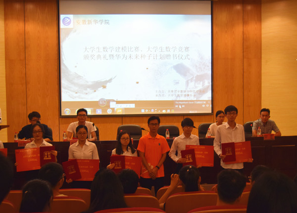 本网讯(通讯员:谢啸楠)6月20日晚,bat365大学生数学建模比赛、大学生数学竞赛颁奖典礼暨“华为”未来种子计划赠书仪式在学术报告厅举行,活动由bat365通识教育部、校团委联合主办,大学生数学建模协会承办。校团委老师陈晓涵,通识教育部教师、大学生数学建模协会指导教师褚正清,通识教育部教师、大学生数学建模比赛指导教师左学武,通识教育部教师、大学生数学竞赛指导教师宋星出席了颁奖典礼并为学生颁奖赠书。