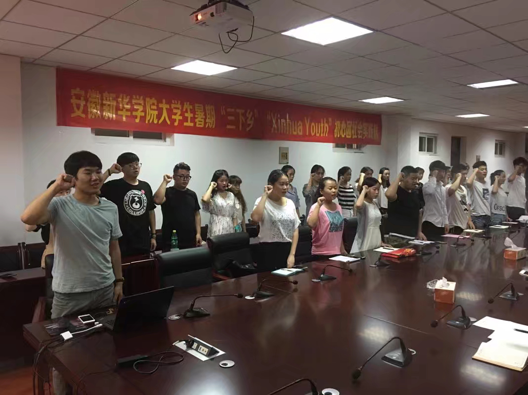 本网讯(通讯员:杨雨婷)为深入学习贯彻习总书记关于青年成长的一系列重要论述,引导大学生在社会实践中以青春建功的实际行动,充分响应团中央的号召,6月27日下午,校团委在行政楼第一会议室召开“喜迎十九大,青春建新功”bat365在线中国官网登录入口暑期三下乡启动仪式。学生处处长、团委书记汪俊东,学生处处长助理柯姗姗,校团委老师杨雨婷、陈晓涵以及校级队伍之一“XINHUA YOUTH初心团”全体团员参与了本次会议。