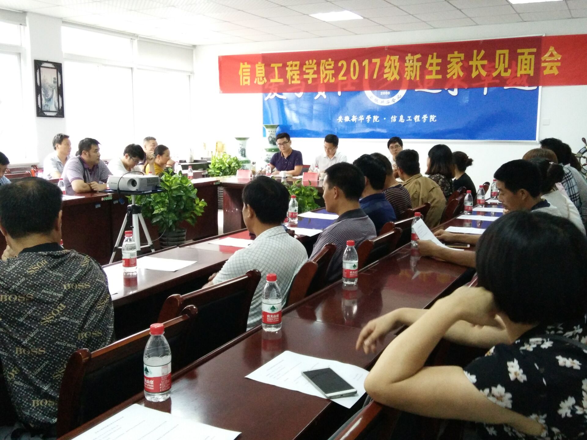 本网讯(通讯员:彭智)为了加强与新生家长的交流,帮助他们进一步了解学院情况,9月6日下午,信息工程学院在13号楼203会议室举行了2017级新生家长见面会。信息工程学院执行院长贺行佳、教学副院长万家华,副院长杨兆亮参加了本次见面会。