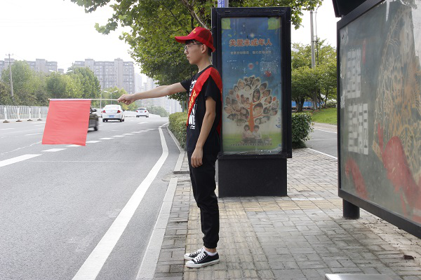 9月23日下午,志愿者们在图书馆门口整装待发,由校园交通车送往目的地。经交警的指导说明,在知悉相关重要交通安全管理条例后,志愿者们佩戴小红帽、绶带,手执小红旗在主要交通路口协助交警检查监督,按交通信号灯指挥车辆和行人停止与通行,引导车辆在停车位规范停放,耐心做好违规者的劝导、教育工作,引导广大交通参与者自觉遵守交通法规。活动历时4个小时,志愿者们认真负责的态度,以及不怕苦、不怕累的精神,得到了执勤民警的赞许。