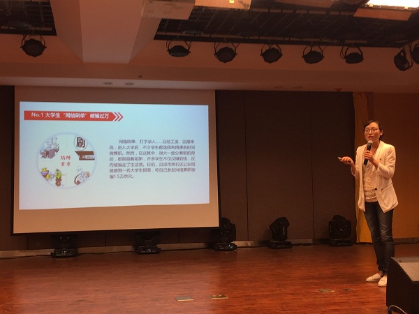 为引导2017级新生树立正确的金钱观念和消费观念,外国语学院辅导员李靖为2017级新生准备了一场以“大学生理性消费”为主题的专题讲座。首先,她利用网络名词“刷单”、“校园贷”引出大学生应理性消费的观点;随后,她系统地介绍了四大不理性消费行为的表现以及危害;最后,她运用丰富的案例说明校园贷的危害,并告诫学生们对待校园贷要做到“四防”:认清网贷风险、防范不良网贷、引导理性消费、营造舆论氛围。此次专题讲座的开展对提高新生的安全防范意识起到了很大的作用。