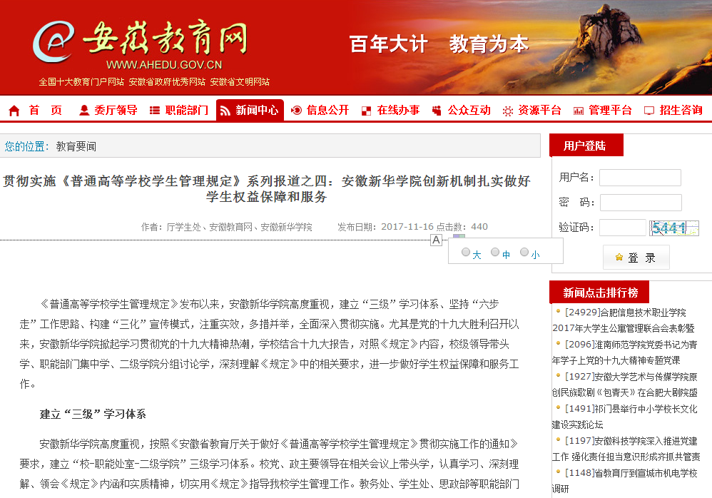 安徽教育网专题报道bat365贯彻实施《普通高等学校学生管理规定》工作