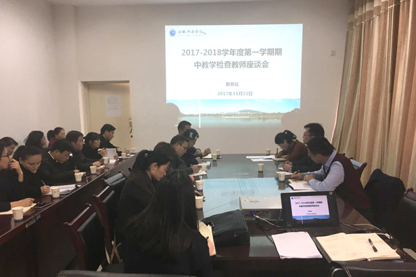 本网讯(通讯员:孟令怡)为了进一步加强师资队伍建设,提高教育教学质量,改善日常教学管理,11月22日下午,教务处召开了期中教学检查教师座谈会。教务处副处长兼评建办副主任孙成伟、科研处副处长张帆、教务处处长助理濮明月、人事处相关负责人及各教学单位选派的23名教师代表参会。座谈会由孙成伟主持。