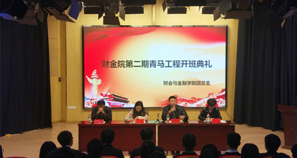 伴随着共青团团歌的响起,本期培训班正式拉开帷幕。随后,学员代表刘雪发言,她代表全体学员承诺,要继承传统,不断创新,锐意进取,坚定对党的理想信念,为全体师生做好服务工作。接下来,芮萍就有关本期培训班的课程内容及纪律要求作了具体介绍,并要求所有学员端正学习态度、遵守培训班规章制度,按质按量完成所有培训课程。最后,窦梅朋作总结讲话,他强调了青马工程的目的及意义,并希望财金学子对于马克思主义要做到“真懂、真信、真实践”:真懂,就做到读原著、读经典;真信,要坚定共产主义信念,坚持马克思主义信仰;真实践,要好好学习,在最美好的大学青春时光让自己丰富强大起来,今后回报社会。