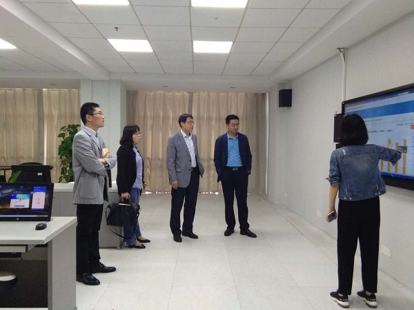据悉,蓝鸽集团成立于1994 年,是一家专业从事教育技术的高科技、集团化企业。此次考察是外国语学院2018年实验室项目建设的前期调研,调研为实验室项目论证奠定基础。外国语学院将在此次考察的基础上,不断了解、学习前沿语言实验室建设技术,探索语言实验室建设思路,为语言实验教学提供有力保障。