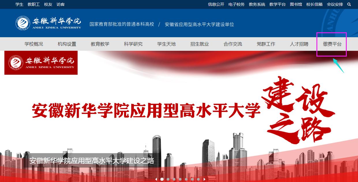 (1) 打开bat365在线中国官网登录入口官网(http:),点击“缴费平台”。(参考下图)