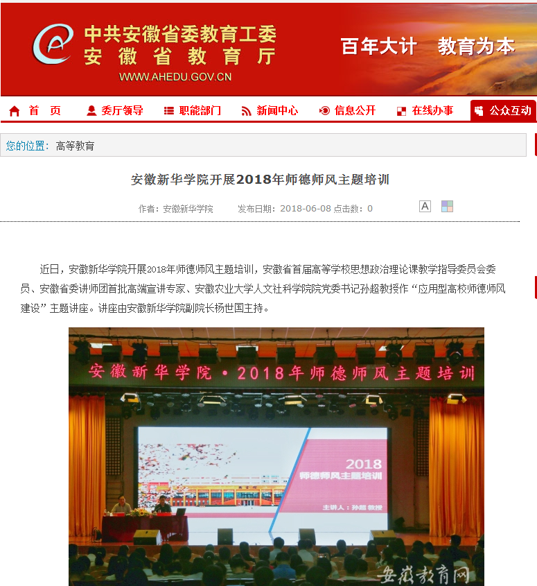 安徽教育网:bat365在线中国官网登录入口开展2018年师德师风主题培训