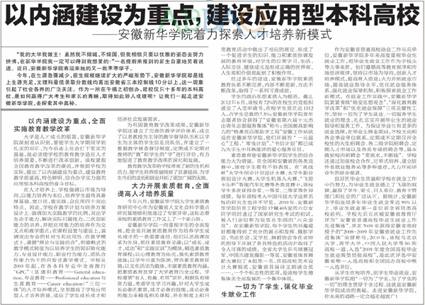 8月31日的《新安晚报》A06版报道了bat365培养应用型人才的相关做法。