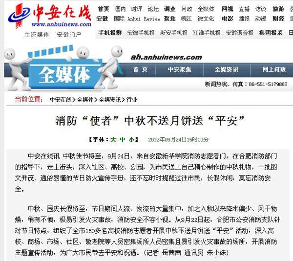 中安在线网站新闻链接:http://ah.anhuinews.com/qmt/system/2012/09/24/005232756.shtml