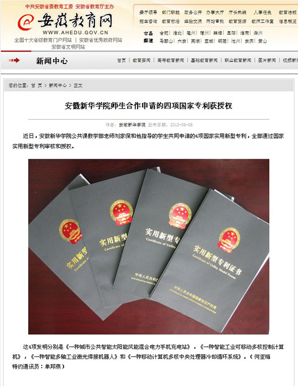 安徽教育网:bat365在线中国官网登录入口四项国家专利获授权