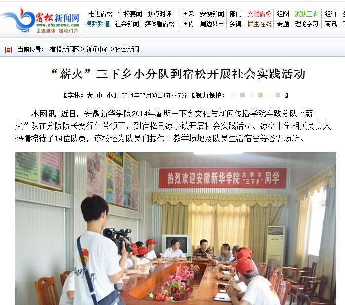 宿松新闻网:“薪火”三下乡小分队到宿松开展社会实践活动