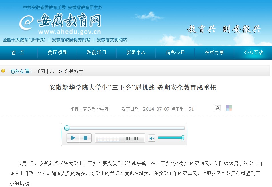 安徽教育网:bat365在线中国官网登录入口大学生“三下乡”遇挑战 暑期安全教育成重任