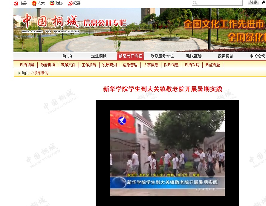 桐城电视台:新华学院学生到大关镇敬老院开展暑期实践