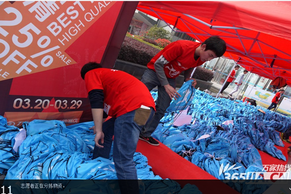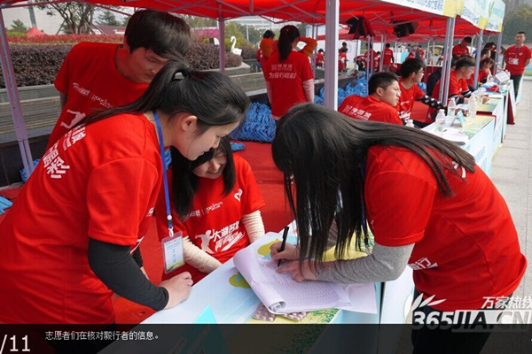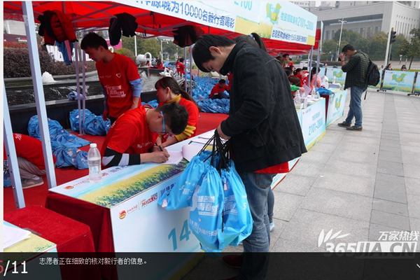 万家热线:bat365在线中国官网登录入口百名志愿者助力2015合肥毅行大会 为毅行者发放物资