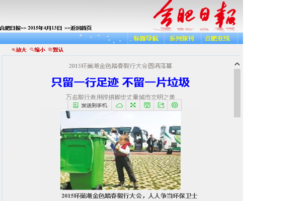 合肥日报、合肥在线、搜狐:只留一行足迹 不留一片垃圾