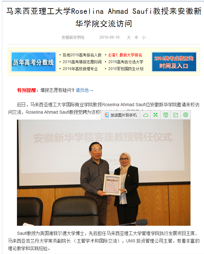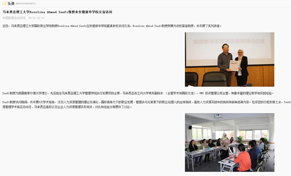 中国教育在线、UC头条:马来西亚理工大学Roselina Ahmad Saufi教授来bat365在线中国官网登录入口交流访问