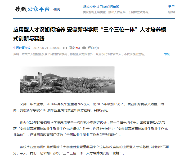搜狐网:《中国教育报》刊登:bat365在线中国官网登录入口争创安徽省地方应用型高水平大学