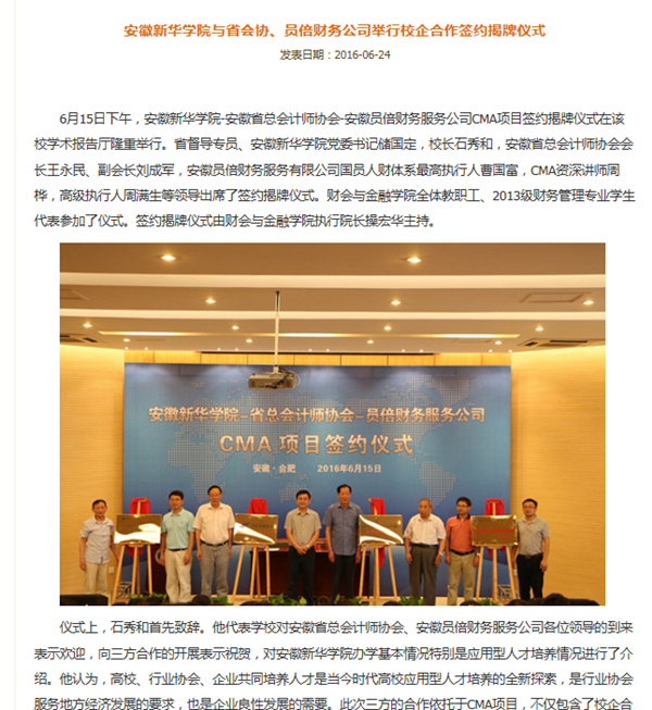 中国教育在线、搜狐网、万家热线:bat365在线中国官网登录入口与省会协、员倍财务公司举行校企合作签约揭牌仪式