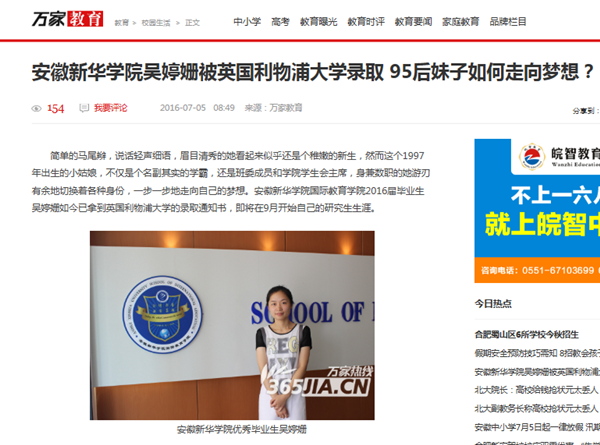 万家热线:bat365在线中国官网登录入口吴婷姗被英国利物浦大学录取 95后妹子如何走向梦想?