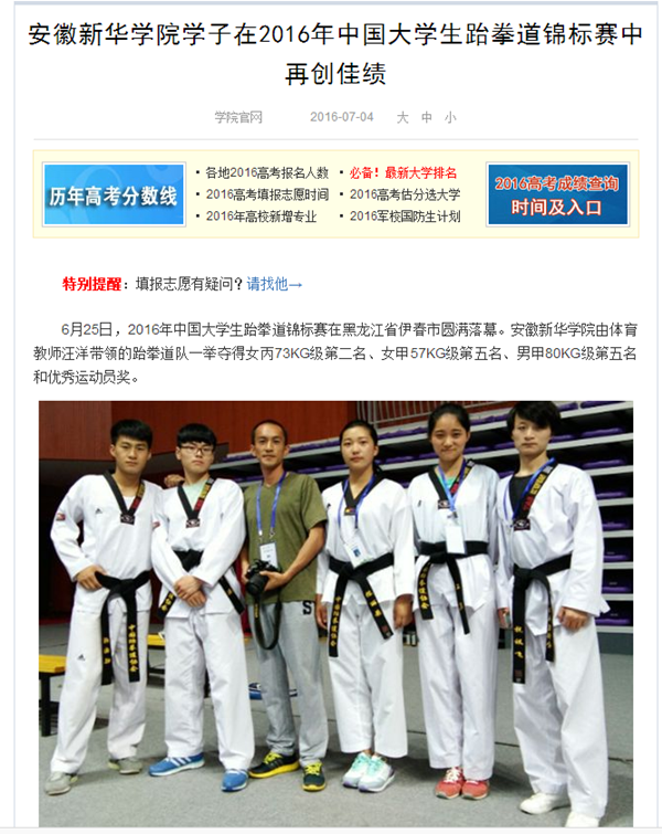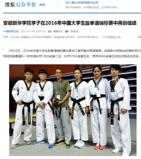 中国教育在线、搜狐网:bat365在线中国官网登录入口学子在2016年中国大学生跆拳道锦标赛中再创佳绩