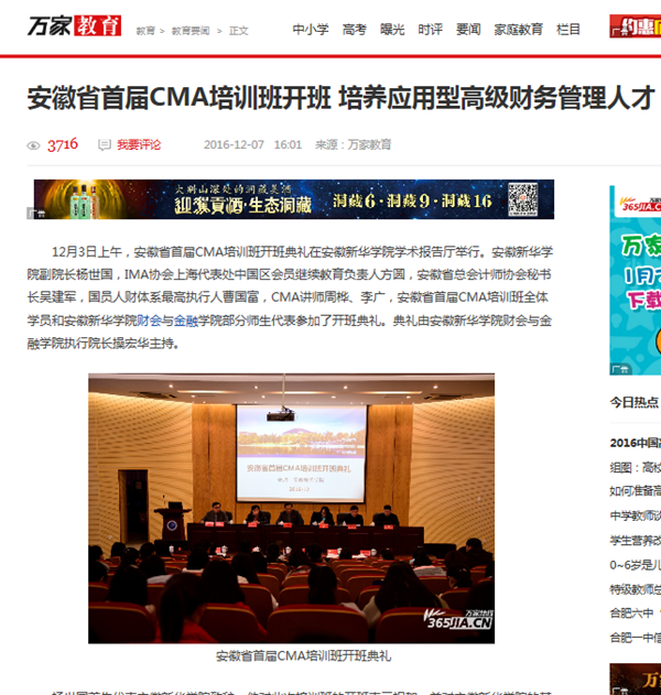 新华网、中国网中国视窗、今日头条等:CMA培训落地安徽,安徽管理会计事业进入新通道