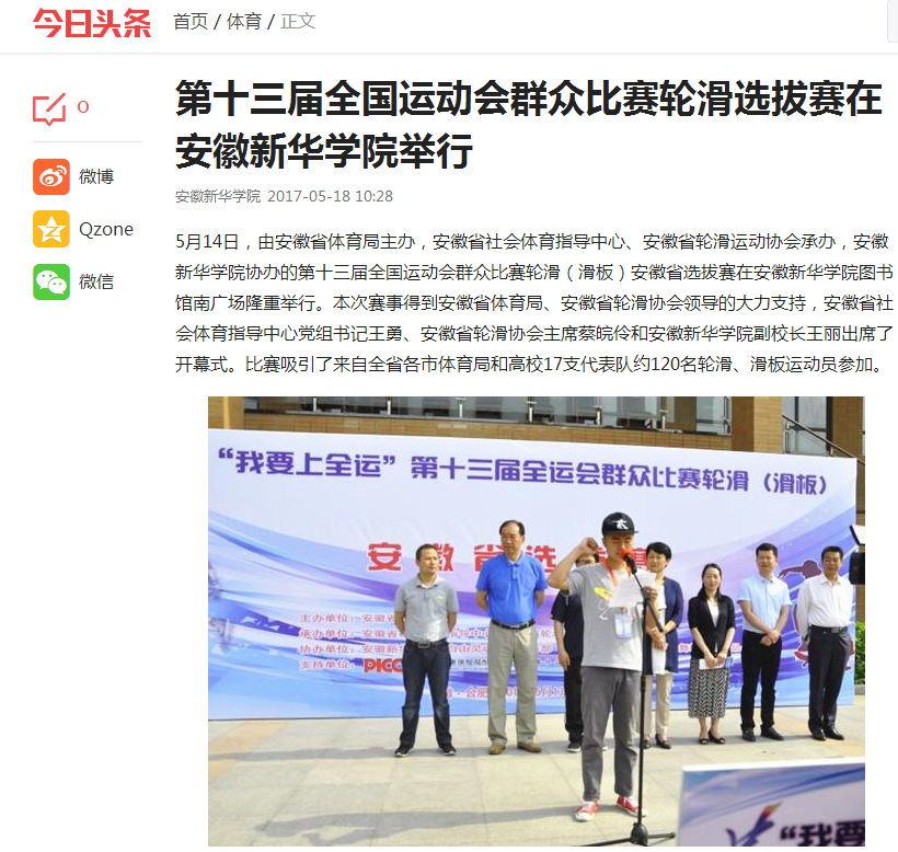 今日头条:第十三届全国运动会群众比赛轮滑选拔赛在bat365在线中国官网登录入口举行