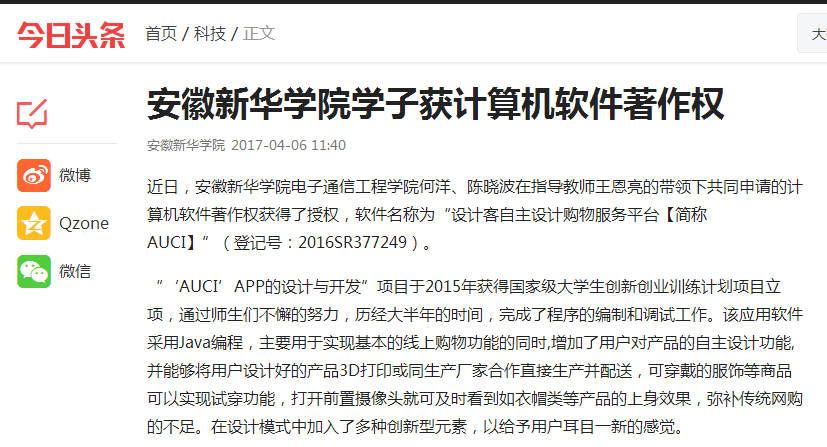 今日头条:bat365在线中国官网登录入口学子获计算机软件著作权