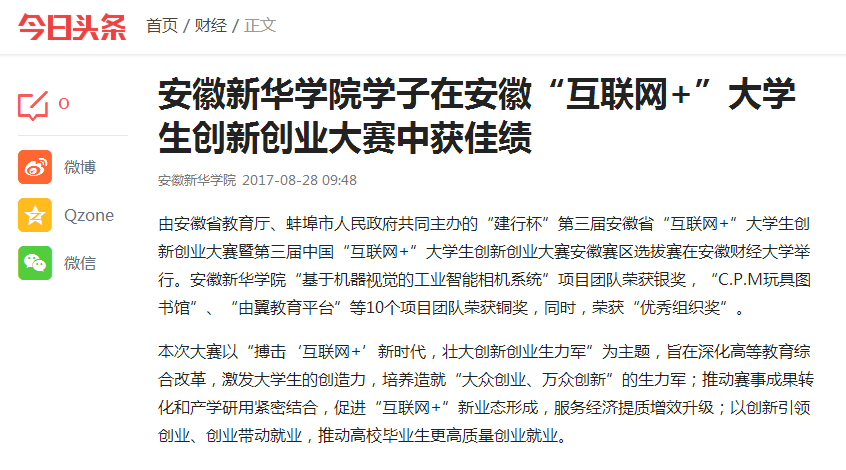 今日头条:bat365在线中国官网登录入口学子在安徽“互联网+”大学生创新创业大赛中获佳绩