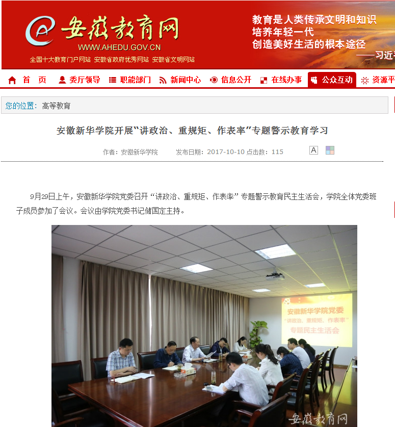 安徽教育网:bat365在线中国官网登录入口开展“讲政治、重规矩、作表率”专题警示教育学习
