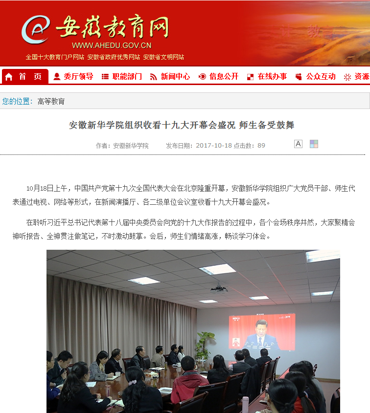 安徽教育网:bat365在线中国官网登录入口组织收看十九大开幕会盛况 师生备受鼓舞