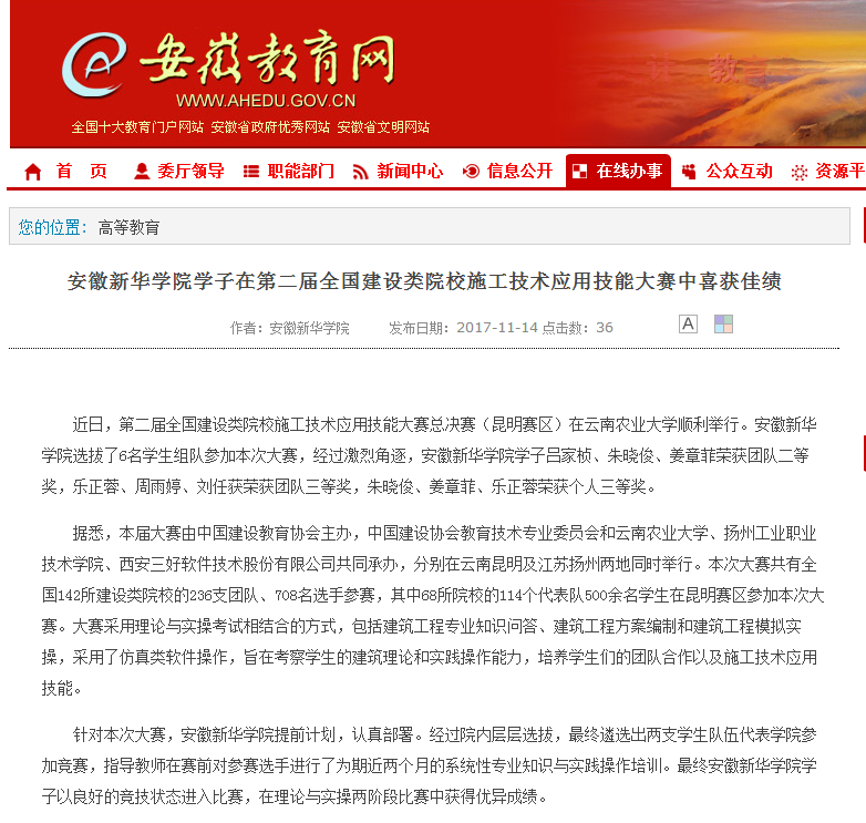 安徽教育网:bat365在线中国官网登录入口学子在第二届全国建设类院校施工技术应用技能大赛中喜获佳绩