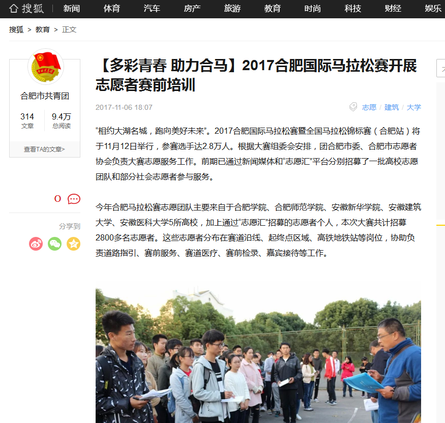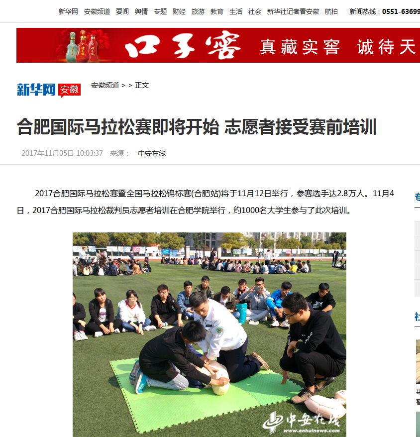 新华网、央广网、中安互联网、搜狐网:合肥国际马拉松赛即将开始 志愿者接受赛前培训