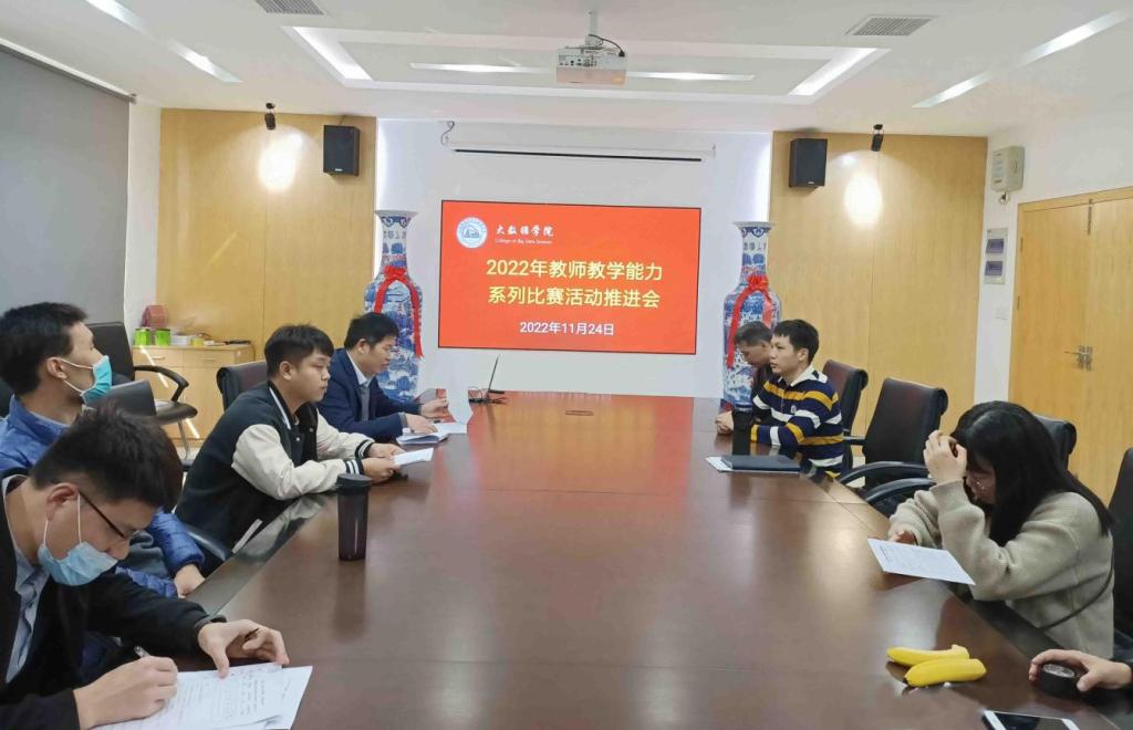 【bat365中文官方网站 讯】为切实做好2022年bat365中文官方网站教师教学能力系列比赛参赛工作,进一步深化教学改革,达到以赛促教、以赛促改的目的。2022年11月24日中午12:50,在学院会议室召开了bat365中文官方网站2022年教师教学能力系列比赛活动推进会,参加会议的人员有赵德福副院长、教研室主任夏贤铃、教研室副主任吴琴琴,以及报名参赛的相关老师,会议由赵德福副院长主持。