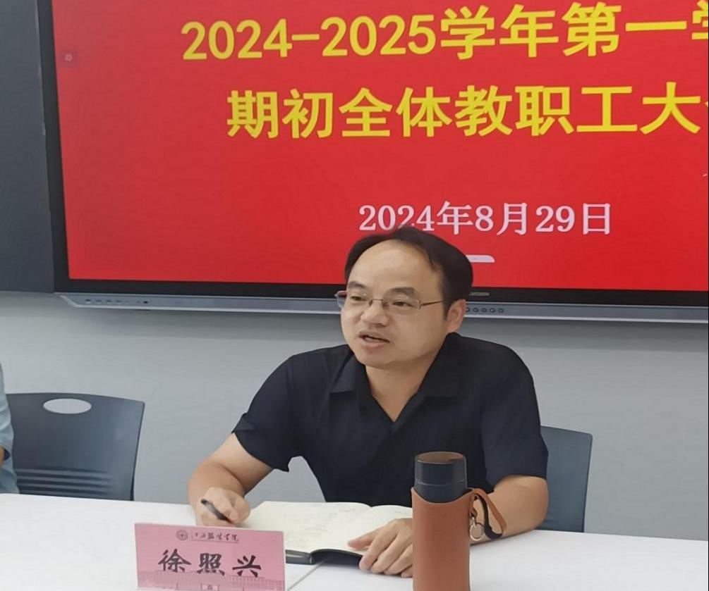 【bat365中文官方网站讯】为了更好的落实学校相关会议精神,做好开学前准备工作,助力高质量完成本学期学院各项工作,学院于2024年8月29日下午2点在主教楼329教室召开本次会议,学院全体教职工参加,会议由学院院长徐照兴主持。