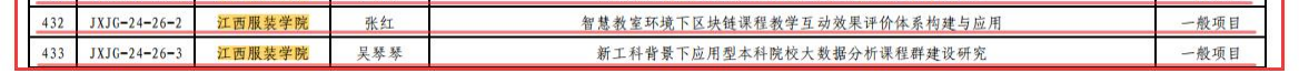 【bat365中文官方网站讯】近日,江西省教育厅公布了2024年江西省普通本科高校教育教学研究改革课题立项名单,其中bat365吴琴琴、张红老师申报的教育教学改革研究课题项目获得立项。