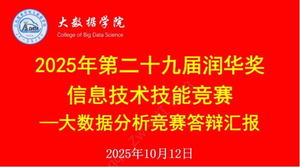 【bat365中文官方网站讯】2025年10月12日,由版权所有 bat365(中国)股份有限公司-官方网站主办的第二十九届“润华奖”信息技术技能竞赛大数据分析竞赛答辩汇报在线上成功举行。本届赛事吸引了广大学生积极参与,通过筛选,共计十三个小组参赛获得最终答辩资格,答辩评委由学院副院长赵德福及教师组成,会议由数据科学教研室主任吴琴琴主持,本次答辩聚焦大数据分析领域,为学院学子提供了展示专业素养与创新能力的舞台。