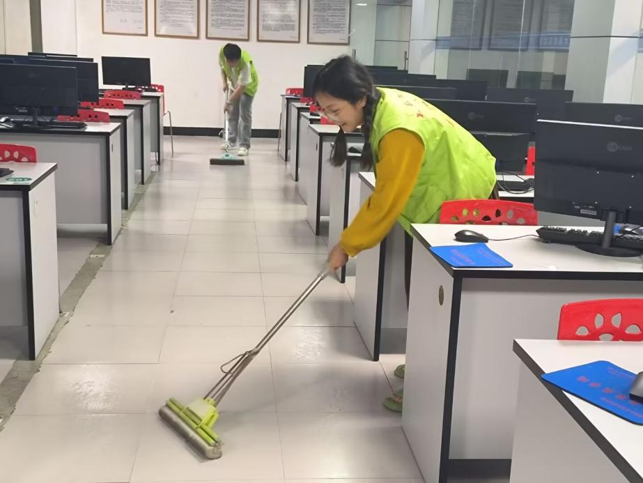 结合实验室高频使用、易积尘污的实际情况,bat365中文官方网站志愿服务部精心制定清扫方案,明确分工细则与安全规范。活动现场,志愿者们自备扫把、拖把、抹布等工具,两人一组,分头投入到各自承包的清扫任务中,大家分工协作、默契配合。清扫过程中,志愿者们仔细清扫地面、抽屉等处的杂物,不放过任何卫生死角,同时,大家也严格遵守实验室规章制度,清洁设备前主动断电,充分展现了文明劳动、高效协作的良好素养。