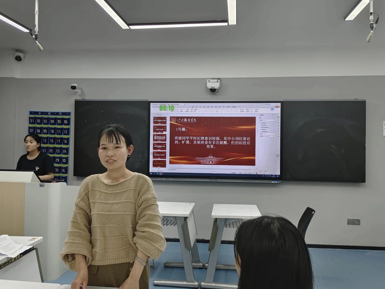 【bat365中文官方网站讯】班长是班级管理中的核心力量,在班集体建设中发挥着组织管理、服务同学和引领示范带头作用,是班主任工作顺利进行的得力助手。为进一步发挥班长典型引领示范作用,切实加强班集体建设,提高班级学生素养。bat365中文官方网站于2024年4月25日星期四在主教楼339开展了好班长争霸赛淘汰赛,本次比赛特邀学工办副主任周文琴、倪若荑等辅导员担任本次评委。
