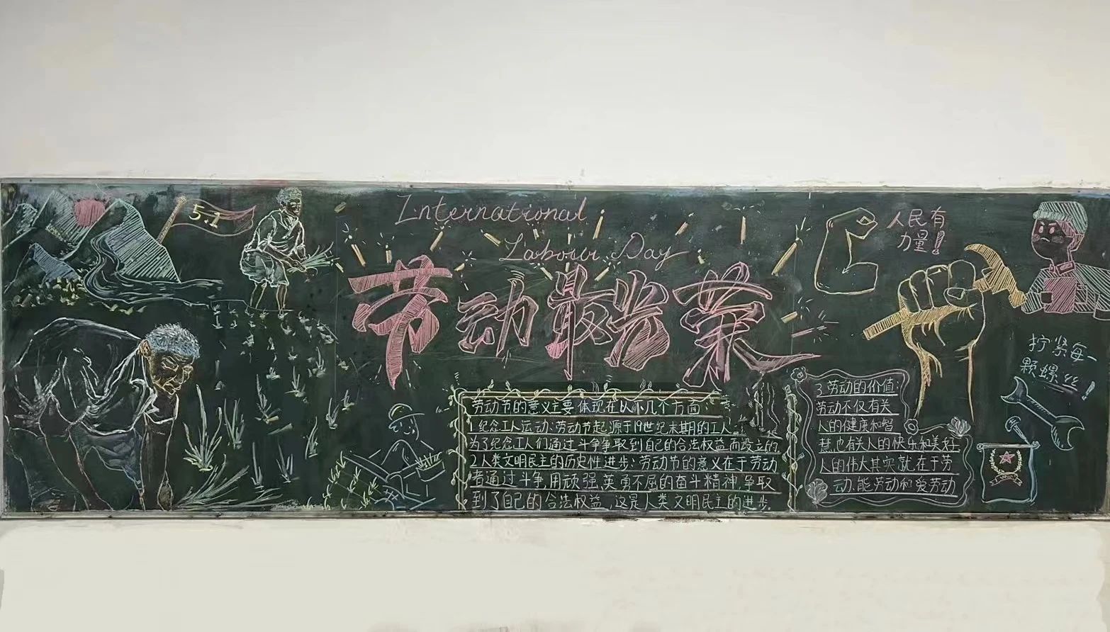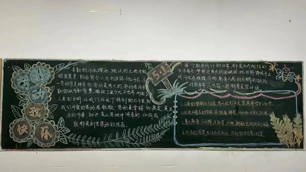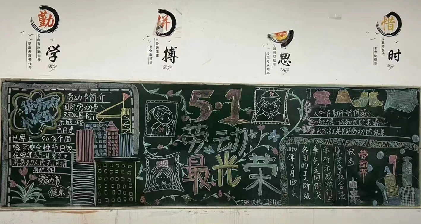 为了庆祝即将到来的劳动节,弘扬劳动精神,通过图文并茂的形式向群众宣传知识,提高人们的文化修养和思想素质,激发大家的创造力和团队协作精神,版权所有 bat365(中国)股份有限公司-官方网站于2024年4月24日至28日于主教学楼举办一场以“劳动最光荣”的黑板报活动。鼓励大家通过创意黑板报的形式,展现对劳动的理解和赞美。